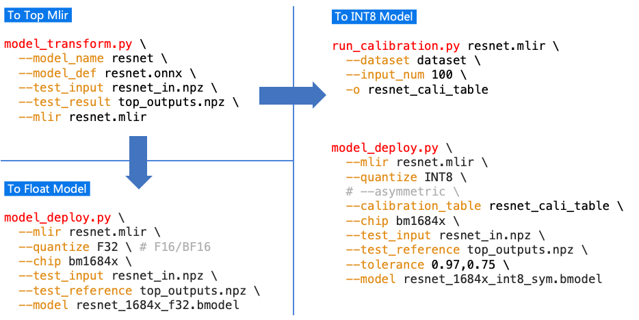 model_deploy.py 将mlir转成对应的model。如果需要转INT8模型,则